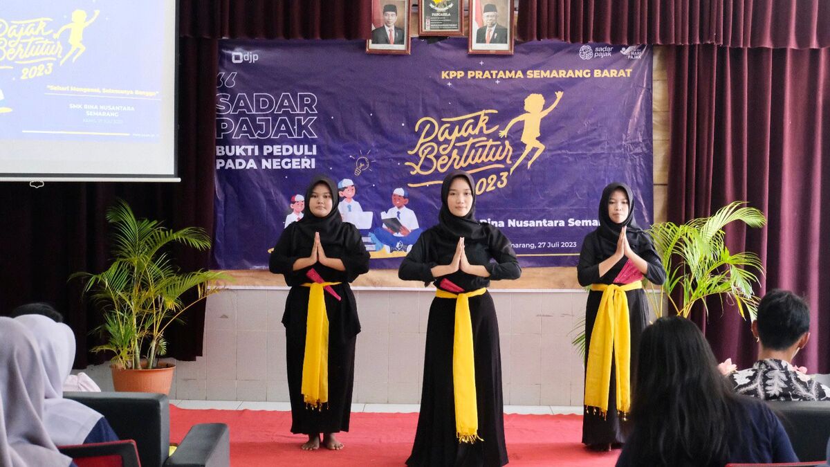 Kantor Pelayanan Pajak (KPP) Pratama Semarang Barat menyelenggarakan kegiatan Pajak Bertutur 2023 yang mengusung tema “Sadar Pajak, Bukti Peduli pada Negeri” dengan tagline “Pajak Bertutur 2023: Sehari Mengenal, Selamanya Bangga” di Sekolah Menengah Kejuruan (SMK) Bina Nusantara Semarang yang diikuti oleh 31 pelajar di Ruang Kelas SMK Bina Nusantara, Kota Semarang (Kamis,27/07).