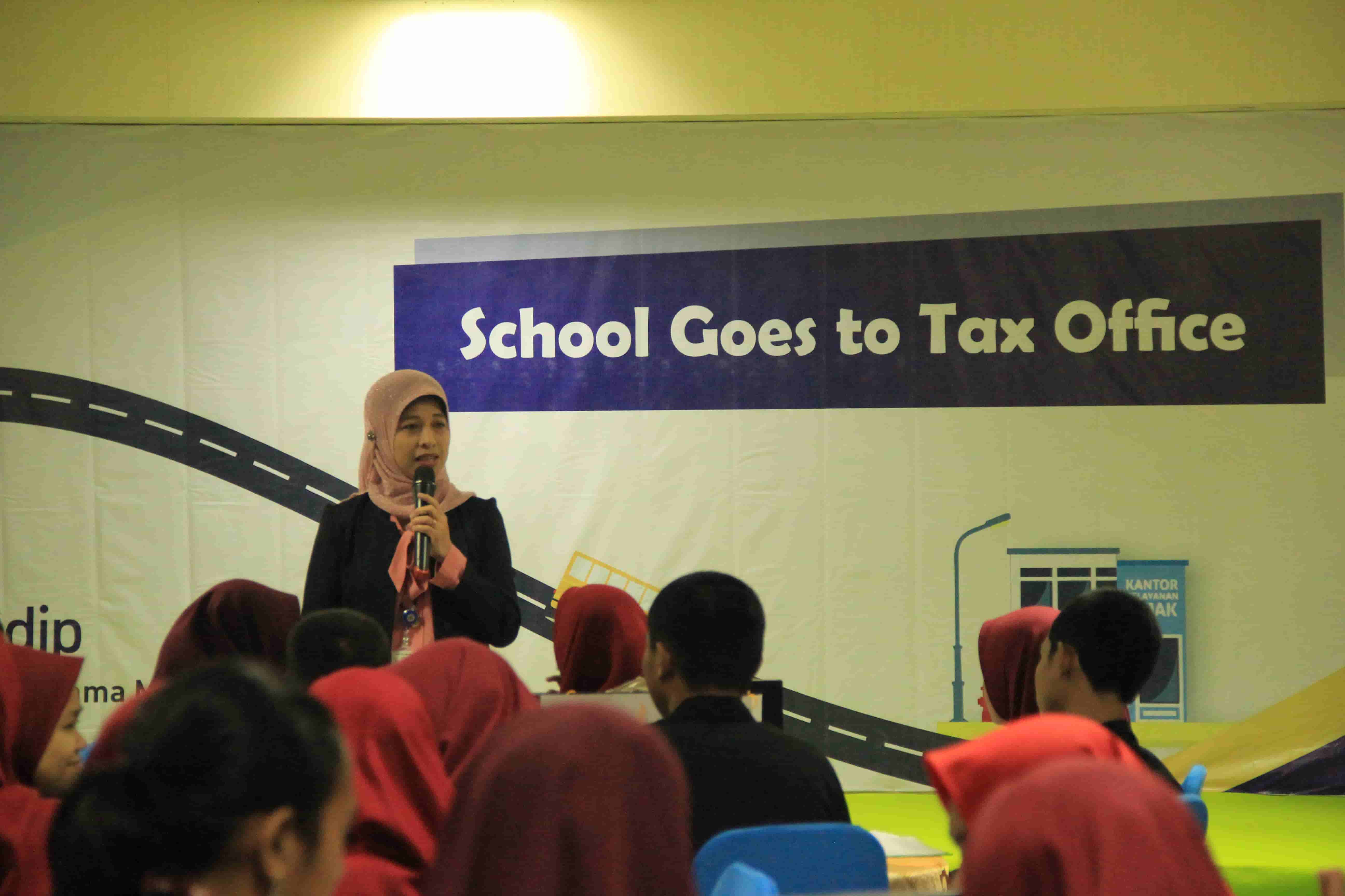 Syamsinar, mewakili Kepala KPP Pratama Makassar Selatan membuka kegiatan School Goes to Tax Office dengan sambutan yang menyampaikan harapan agar kelak para peserta dapat berkontribusi untuk menciptakan negara Indonesia yang mandiri dan sejahtera melalui kepatuhan melaksanakan hak dan kewajiban perpajakan. School Goes to Tax Office kali ini berbeda dari sebelumnya karena tidak hanya memberikan sosialisasi tentang manfaat pajak bagi negara, tetapi juga memberikan edukasi mengenai SPT PPh Pasal 21 kepada para peserta.