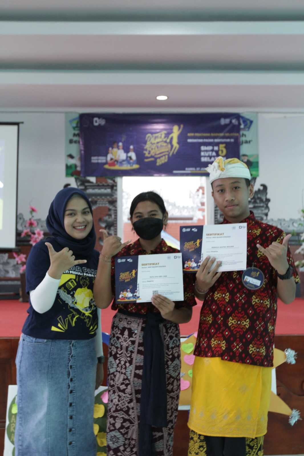Kegiatan ini diawali dengan sendra tari Sekar Jepun yang dipersembahkan oleh siswi SMP 5 Kuta Selatan, dilanjutkan dengan sambutan dari Kepala KPP Pratama Badung Selatan dan Wakil Kepala SMP 5 Kuta Selatan. Setelah itu dilanjutkan dengan pemaparan materi oleh fungsional penyuluh. Pada kegiatan kali ini, materi edukasi berupa kesadaran pajak disampaikan oleh Fungsional Penyuluh Pajak Suzanne Oktaviani Ulfa. Dalam materinya, Suzanne menyampaikan kontribusi pajak terhadap penerimaan negara Indonesia serta hal-hal yang dapat dilakukan oleh generasi muda untuk membangun pajak dan negara Indonesia.