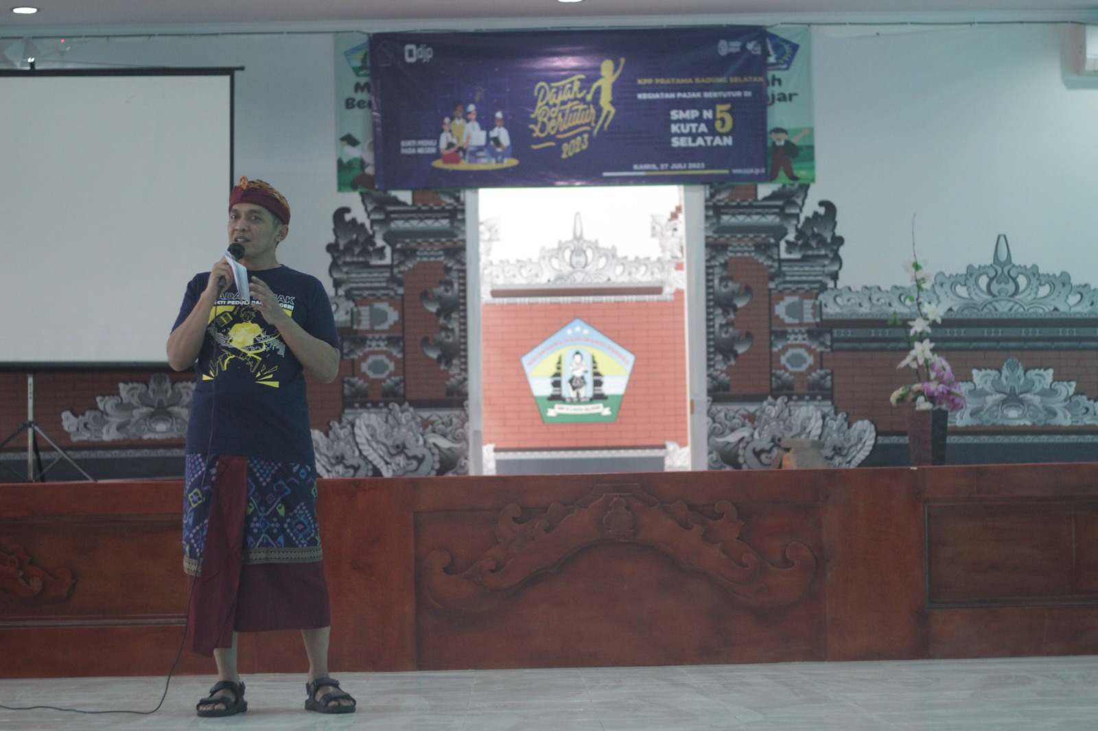 Kantor Pelayanan Pajak (KPP) Pratama Badung Selatan melakukan kegiatan Pajak Bertutur kepada siswa Sekolah Menengah Pertama (SMP) 5 Kuta Selatan. Kegiatan ini diikuti oleh 35 siswa dan 10 orang guru yang bertempat di Aula SMP 5 Kuta Selatan, Kecamatan Kuta Selatan, Badung (Kamis, 27/7).