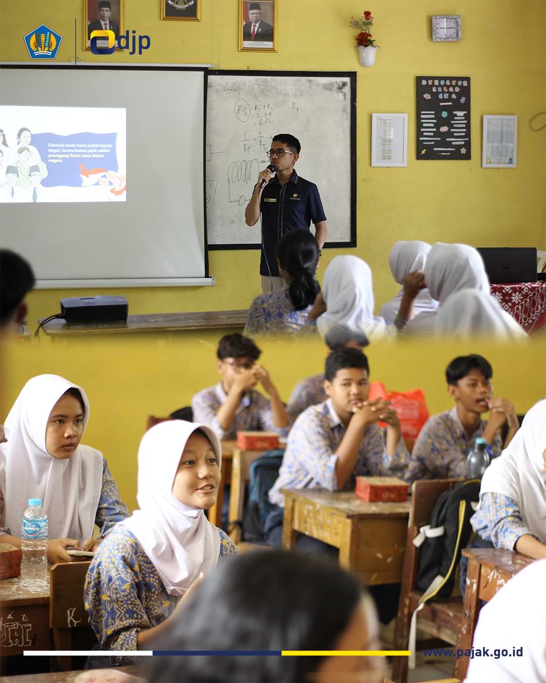 Kantor Pelayanan Pajak (KPP) Pratama Karawang memberikan edukasi perpajakan dan keuangan negara kepada peserta didik di sekolah SMP Negeri 5 Karawang, Jawa Barat (Rabu, 22/10). Kegiatan ini dilaksanakan di dua kelas dengan peserta didik dari Kelas 8 dan 9.