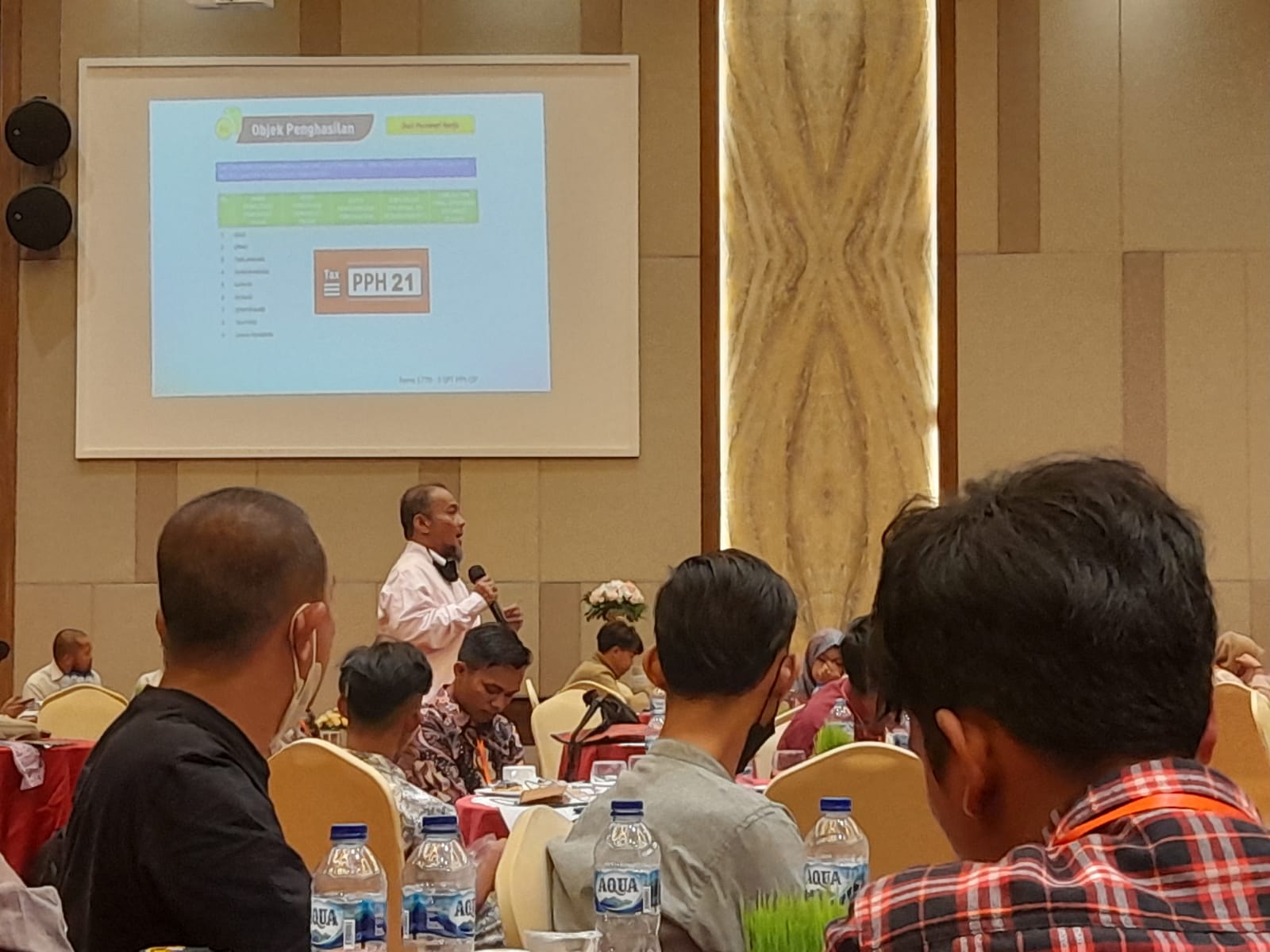 Kantor Wilayah Direktorat Jenderal Pajak (Kanwil DJP) Sumatera Barat dan Jambi melalui Fungsional Penyuluh Pajak Ahli Muda, Irnilda Zenti, menjadi narasumber Kewajiban Perpajakan bagi Pelaku Usaha Ekonomi Kreatif di Ballroom The ZHM Premiere Grand Zuri Padang, Kamis (24/03/2022).
