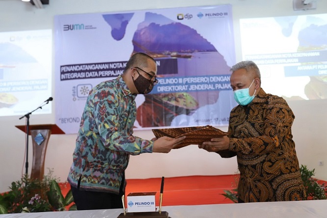 PT Pelindo III (Persero) menandatangani Nota Kesepahaman Bersama dengan Direktorat Jenderal Pajak di Pelabuhan Tanjung Emas Semarang (Jumat, 17/7). Pelindo III (Persero) merupakan BUMN ke-tiga yang telah melakukan proses Nota Kesepahaman Integrasi Data bersama DJP setelah PT Pertamina (Persero) dan PT PLN (Persero).