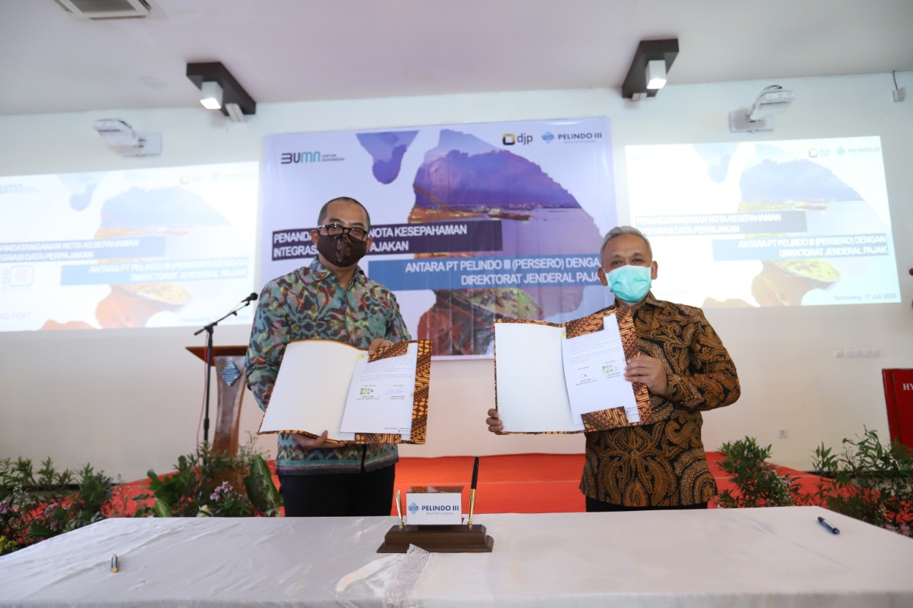 PT Pelindo III (Persero) resmi menandatangani Nota Kepepahaman Bersama (MoU) Program Integrasi Data Perpajakan dengan Direktorat Jenderal Pajak di Jakarta (Jumat, 11/7). Pelindo III merupakan perusahaan BUMN ketiga yang telah menandatangani nota kesepahaman program ini setelah PT Pertamina (Persero) dan PT PLN (Persero).