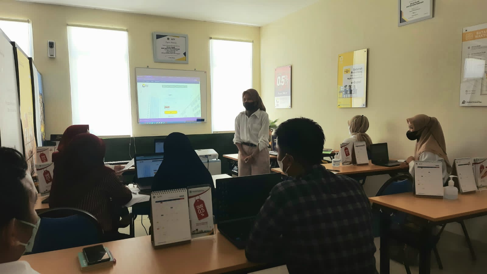 “Jadi ada 3 jenis formulir penyampaian SPT Tahunan Orang Pribadi, yaitu 1770, 1770 S, 1770 SS. Dan untuk SPT Tahunan Badan menggunakan formulir 1771. Disini ada yang tahu tidak denda apabila tidak lapor atau terlambat lapor SPT Tahunan itu berapa?” tanya kak Ika. Para mahasiswa/i menanggapi dengan antusias, mereka memiliki semangat yang tinggi dalam menjawab pertanyaan seputar pada materi yang secara teoritis telah disampaikan di perkuliahan mereka.