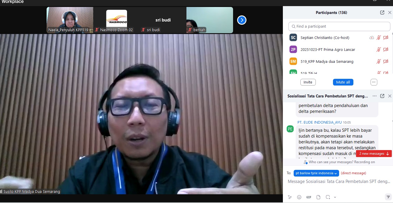 Kantor Pelayanan Pajak (KPP) Madya Dua Semarang menggelar sosialisasi daring pembetulan Surat Pemberitahuan (SPT) menggunakan skema delta dan replace kepada 135 wajib pajak di Jawa Tengah, Semarang, (Selasa, 10/3). Kegiatan ini diselenggarakan sebagai respons atas terbitnya Peraturan Direktur Jenderal Pajak Nomor PER-11/PJ/2025 yang mengubah tata cara pembetulan SPT dalam sistem Coretax DJP, dan menyasar wajib pajak yang berpotensi menggunakan skema regulasi ini.