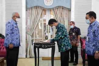 Kantor Pelayanan Pajak (KPP) Pratama Purbalingga bersama dengan Kantor Pelayanan Perbendaharaan Negara (KPPN) dan Pemerintah Daerah Kabupaten Banjarnegara mengadakan penandatanganan Berita Acara Rekonsiliasi (BAR) Penyetoran Pajak Pusat atas Beban Anggaran Pendapatan dan Belanja Daerah (APBD) Periode Semester II tahun 2021 di Rumah Dinas Bupati Banjarnegara, Banjarnegara (Kamis, 17/2).