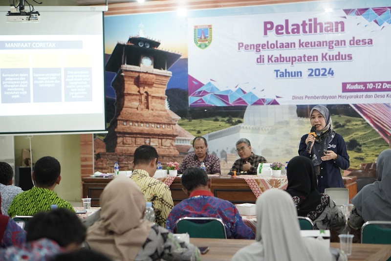 Kantor Pelayanan Pajak (KPP) Pratama Kudus bekerja sama dengan Dinas Pemberdayaan Masyarakat Desa (PMD) menyelenggarakan acara Pelatihan Pengelolaan Keuangan Desa di Kabupaten Kudus Tahun 2024 di Aula Natasangin Lantai 2 Dinas PMD Kabupaten Kudus, Kabupaten Kudus (Selasa, 10/12).