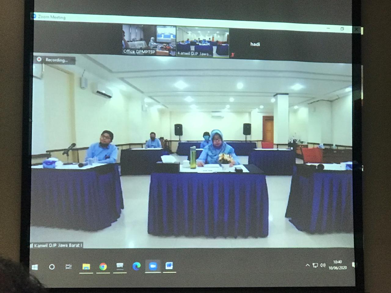 Kanwil DJP Jawa Barat I menghadiri undangan rapat koordinasi evaluasi implementasi Konfirmasi Status Wajib Pajak (KSWP) dari Dinas Penanaman Modal dan Pelayanan Terpadu Satu Pintu (DPMPTSP) Kota Bandung melalui konferensi video (Rabu, 10/6).