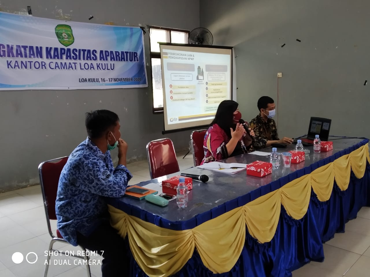 Kantor Pelayanan Pajak (KPP) Pratama Tenggarong menghadiri undangan Kantor Kecamatan Loa Kulu untuk menjadi narasumber dalam acara Penguatan Kapasitas Pengelolaan Keuangan Desa di Kecamatan Loa Kulu, Kabupaten Kutai Kartanegara (Selasa, 17/11). Acara berlangsung di Aula Serbaguna Kantor Kecamatan Loa Kulu di Kabupaten Kutai Kartanegara dengan dihadiri oleh para perwakilan desa. Latar belakang diadakan acara tersebut adalah untuk meningkatkan pemahaman tentang Perpajakan Pemerintah Desa atau Pajak Atas Dana Desa.