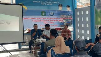 Kepala Kantor Pelayanan Penyuluhan dan Konsultasi Perpajakan (KP2KP) Mempawah Muhammad Arief Yusfar bersama Fitra Adil Fikorata, pegawai KP2KP Mempawah menjadi narasumber dalam Sosialisasi Penerapan Cara Budidaya Ikan yang Baik Tingkat Provinsi Pusat Pelatihan Mandiri Kelautan dan Perikanan (P2MKP) Kawan Sejati Kabupaten Mempawah (Kamis, 14/9).