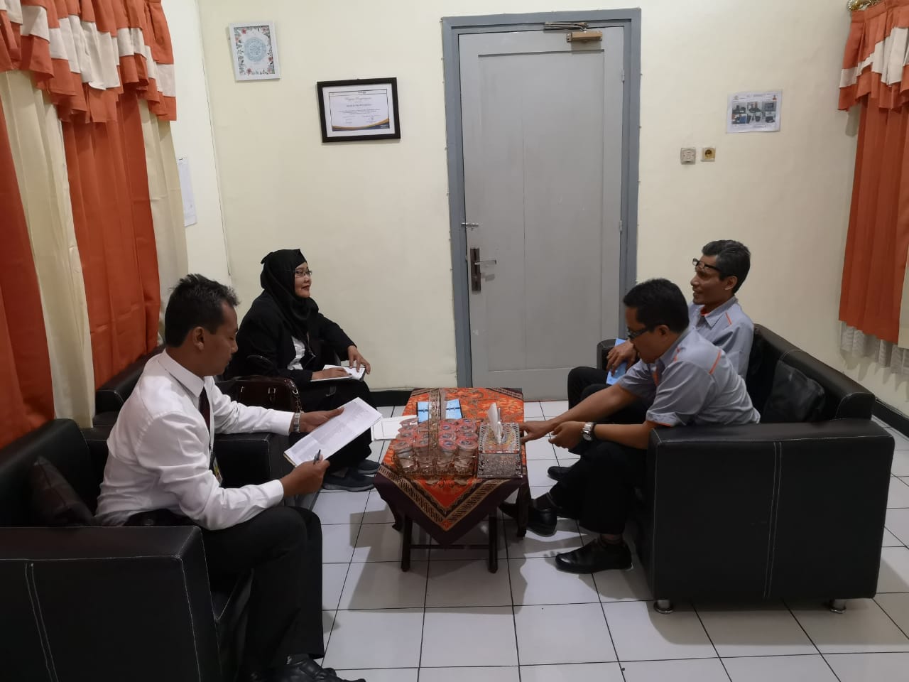 Tim dari Kantor Pelayanan Pajak Pratama Ponorogo yang beranggotakan Haris Wahyu Saputro selaku Kepala Seksi Waskon I Wiwik Wasiati, dan Erri Prasetya selaku Account Representative Waskon I diterima langsung oleh Kepala Kantor PT POS Indonesia (Persero) Cabang Ponorogo Hadi Ernowo yang didampingi oleh staf bagian keuangan. Dalam pertemuan tersebut, diharapkan dapat meningkatkan kerja sama antara KPP Pratama Ponorogo dan Kantor Pos dalam rangka penjualan benda meterai, khususnya meterai tempel.