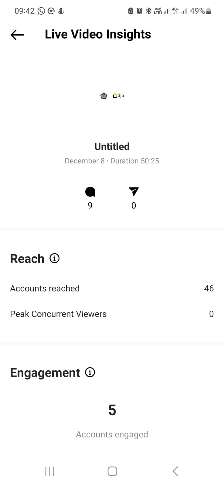 Siaran ini diikuti oleh pengikut Instagram KPP sejumlah 46 akun dengan durasi selama 48 menit. Interaksi berupa pertanyaan seputar validasi data identitas wajib pajak serta permasalahan NPWP ganda.