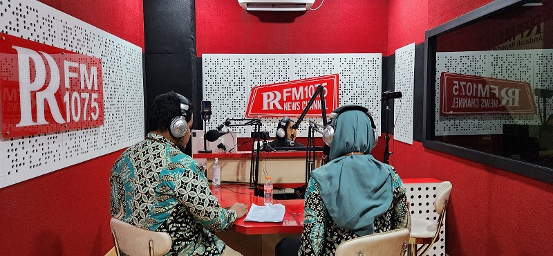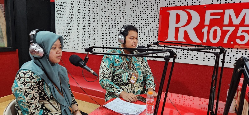 Penyuluh KPP Pratama Cimahi Za'imatul Habibah dan Nurkhasan Prasetyo menjadi narasumber dalam acara gelar wicara di Radio PR FM, Jalan Asia Afrika No 77 Kota Bandung (Jumat, 9/6).