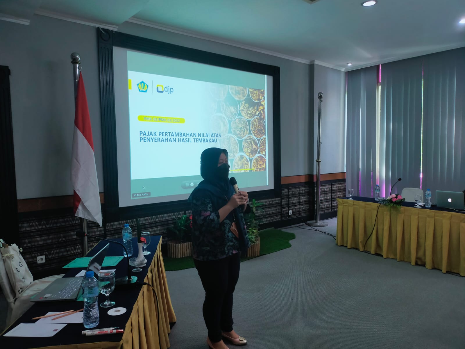 Tim Penyuluh Kantor Pelayanan Pajak (KPP) Pratama Cimahi Za’imatul Habibah dan Reni Safitri memenuhi undangan dari Perkumpulan Produsen E Liquid Indonesia (PPEI) untuk menjelaskan Peraturan Menteri Keuangan Nomor 63 Tahun 2022 tentang Pajak Pertambahan Nilai atas Penyerahan Hasil Tembakau di Bandung (Kamis, 13/7).