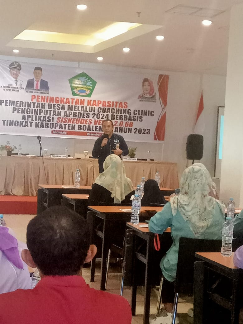 Kantor Pelayanan Pajak (KPP) Pratama Gorontalo menjadi narasumber dalam kegiatan Peningkatan Kapasitas Pemerintah Desa melalui Coaching Clinic Penginputan Anggaran Pendapatan dan Belanja Desa (APBDes) Tahun 2024 Kabupaten Boalemo Tahun 2023. Kegiatan ini diselenggarakan oleh Dinas Sosial dan Pemberdayaan Masyarakat dan Desa (PMD) Kabupaten Boalemo di Hotel Amaris Kota Gorontalo (Minggu ,17/12)