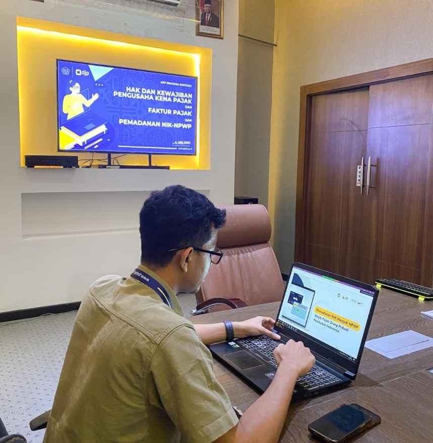 Kantor Pelayanan Pajak (KPP) Pratama Bontang mengadakan kelas pajak yang membahas mengenai Hak dan Kewajiban Pengusaha Kena Pajak (PKP), Pemadanan NIK-NPWP serta PER-11/PJ/2022 tentang Perubahan Atas Peraturan Direktur Jenderal Pajak Nomor PER-03/PJ/2022 Tentang Faktur Pajak (Kamis, 4/5). Acara ini diadakan secara daring di Ruang Rapat KPP Pratama Bontang, Kota Bontang.