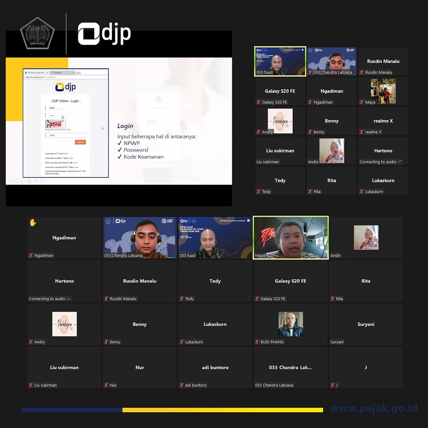 Kantor Pelayanan Pajak (KPP) Pratama Jakarta Tambora kembali mengadakan Kelas Pajak dengan tema Pelaporan SPT Tahunan Wajib Pajak Orang Pribadi dan Validasi NIK (PMK 112) melalui aplikasi Zoom Meeting yang diikuti lebih dari 15 wajib pajak terdaftar KPP Pratama Jakarta Tambora (Selasa, 8/11).