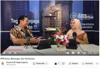 Tim Penyuluh Pajak Kantor Wilayah Direktorat Jenderal Pajak Wajib Pajak Besar (Kanwil LTO) mengunggah siniar pada aplikasi Youtube dengan judul PPN Emas Batangan dan Perhiasan, Jakarta (Senin, 19/6). Siniar kali ini membahas mengenai aspek perpajakan khususnya Pajak Pertambahan Nilai (PPN) bagi emas batangan dan emas perhiasan.