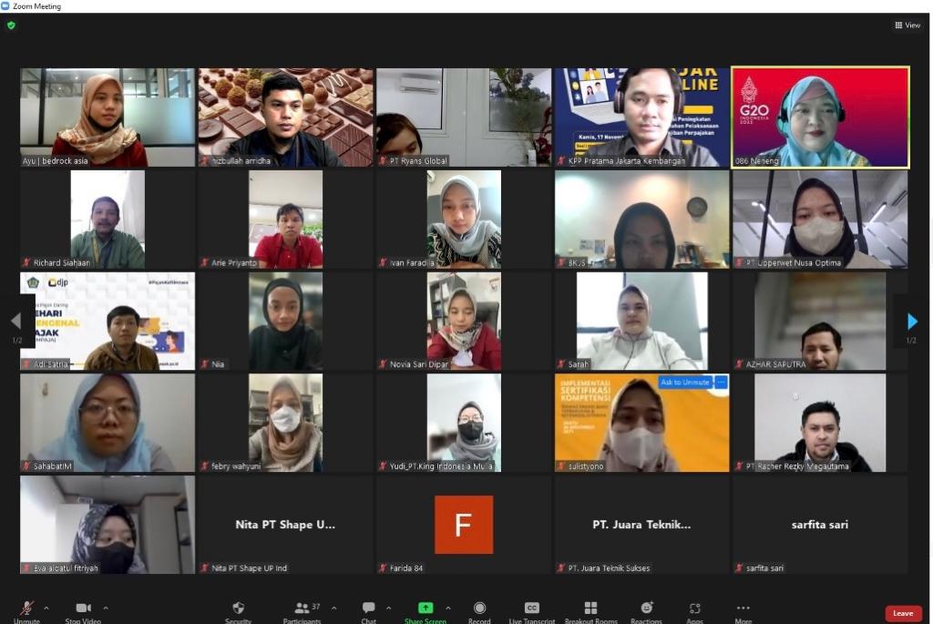 Kantor Pelayanan Pajak (KPP) Pratama Jakarta Kembangan kembali menggelar kelas pajak online dengan tema kewajiban perpajakan melalui aplikasi Zoom Meeting (Kamis, 17/11).