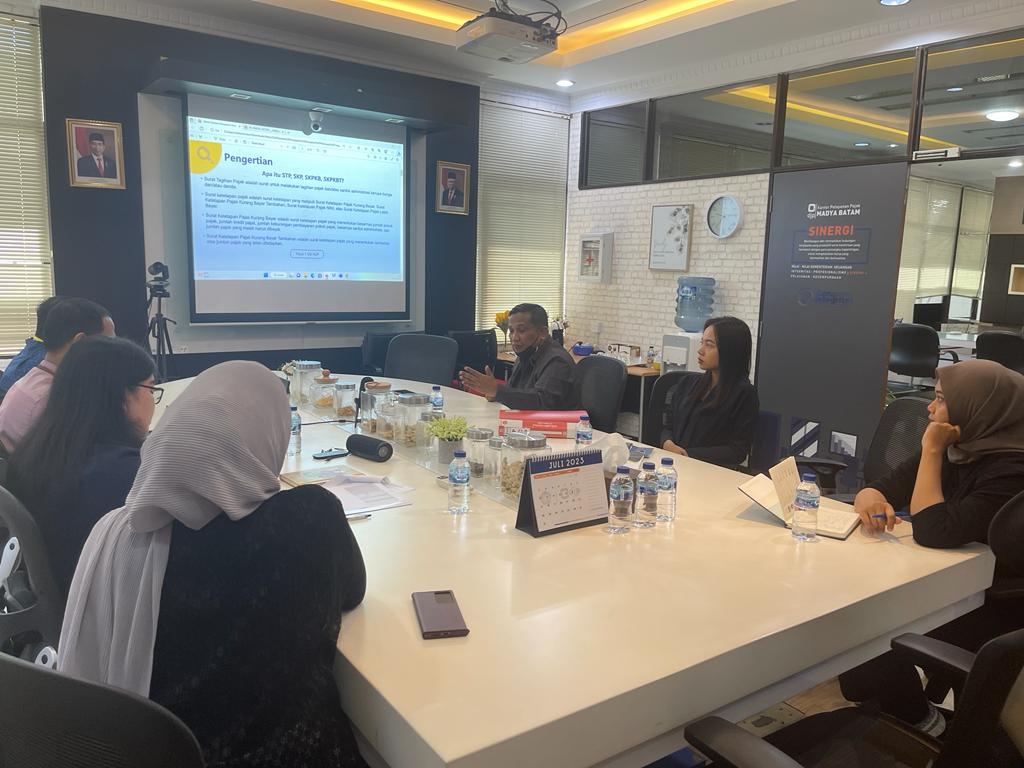 Kantor Pelayanan Pajak (KPP) Madya Batam memberikan penyuluhan kepada wajib pajak badan dengan metode one-on-one di ruang rapat Natuna KPP Madya Batam, Kota Batam, Kepulauan Riau (Kamis, 13/7). Wajib pajak yang menjadi sasaran penyuluhan adalah wajib pajak salah satu badan usaha yang bergerak di bidang konstruksi yang berlokasi di Kecamatan Batam Kota, Batam.