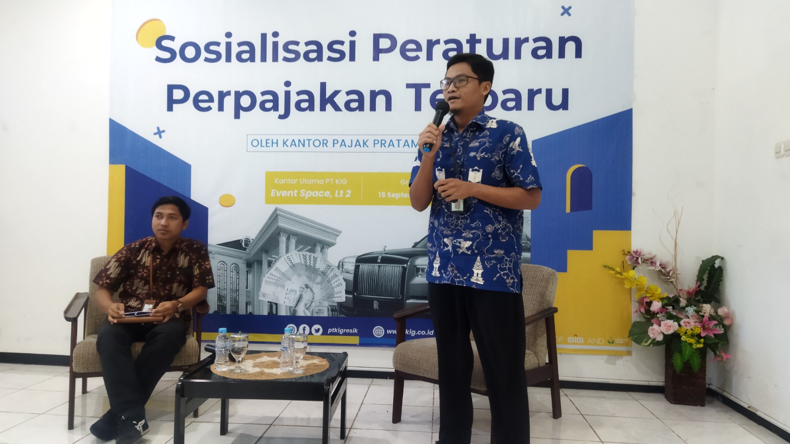 Kantor Pelayanan Pajak (KPP) Pratama Gresik mendatangi Kantor Pusat Kawasan Industri Gresik (KIG) dalam rangka memenuhi undangan sebagai narasumber dalam kegiatan sosialisasi peraturan perpajakan terbaru yang diselenggarakan oleh Kantor Pusat KIG (Rabu, 15/9).