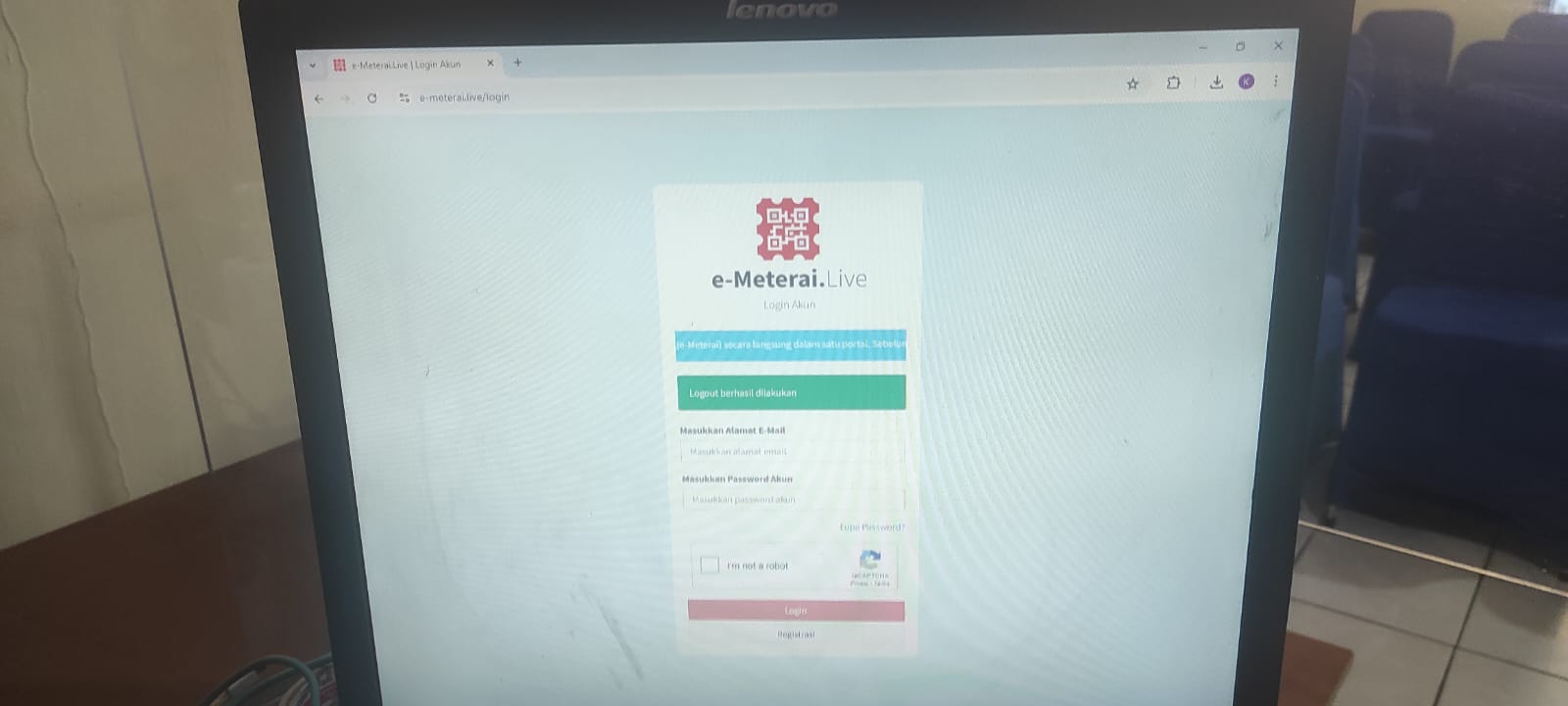 Kharisma menambahkan, “Ibu, untuk keperluan pemeteraiannya dapat menggunakan e-Meterai atau meterai elektronik. Mari, saya akan pandu Ibu menggunakan meterai elektronik untuk dibubuhkan di surat pernyataan,” tutur Kharisma.