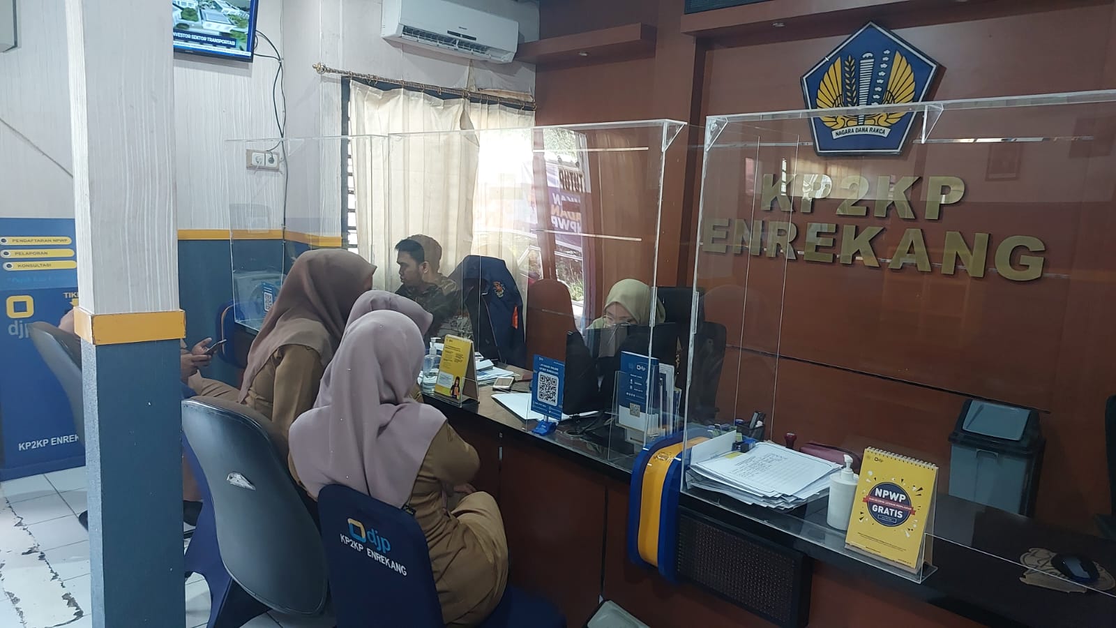 Kantor Pelayanan, Penyuluhan, dan Konsultasi (KP2KP) Enrekang menerima kunjungan dari Bendahara Dinas Komunikasi, Informatika, dan Statistik (Diskominfo) Kabupaten Enrekang di Jalan Buttu Juppandang, Kab. Enrekang, Sulawesi Selatan (Selasa, 25/7).