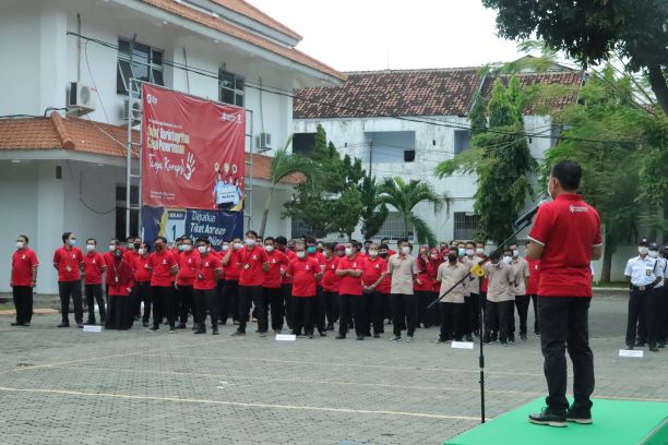 Kantor Pelayanan Pajak (KPP) Pratama Banyuwangi menggelar kampanye simpatik Hari Antikorupsi Sedunia (Hakordia) 2020 di Banyuwangi, Senin (7/12). Kegiatan ini diawali dengan apel pagi yang diikuti oleh seluruh pegawai, security, cleaning service dan pramubakti.