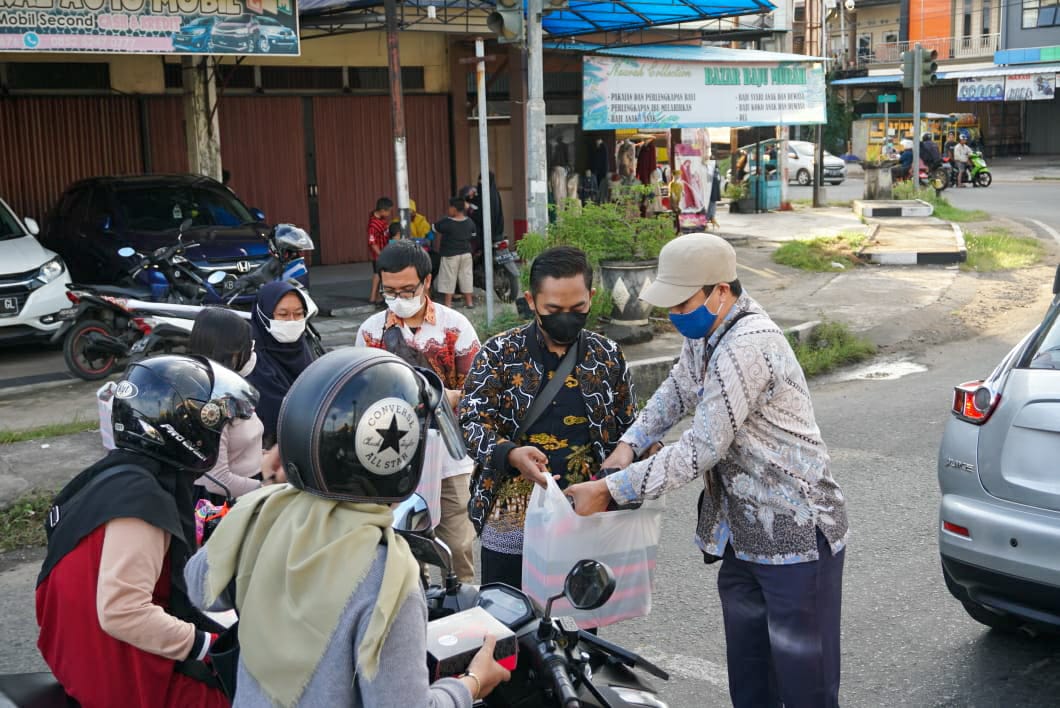 Pada kegiatan tersebut, pegawai KPP Pratama Ketapang membagikan sebanyak 400 kotak takjil kepada masyarakat yang sedang melintasi jalan.