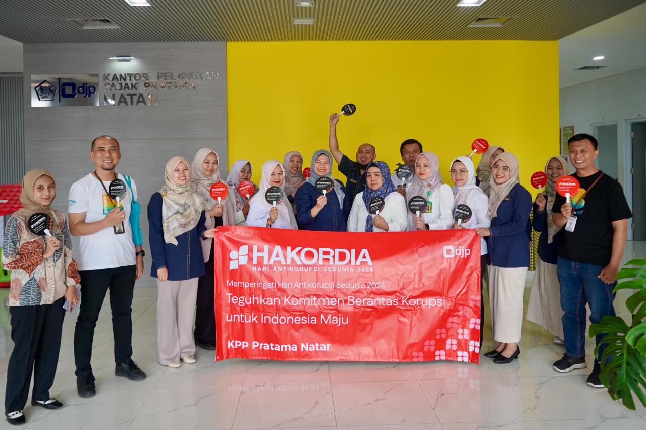 Kantor Pelayanan Pajak (KPP) Pratama Natar menggelar kegiatan penguatan integritas bersama wajib pajak di Ruang Co-Working Space (CWS) KPP Pratama Natar, Jalan Lintas Sumatra KM 29.5, Haduyang, Natar, Kabupaten Lampung Selatan, Lampung (Rabu, 4/12). Kegiatan ini dilaksanakan dalam rangka memperingati Hari Antikorupsi Sedunia (Hakordia) yang jatuh pada 9 Desember 2024.