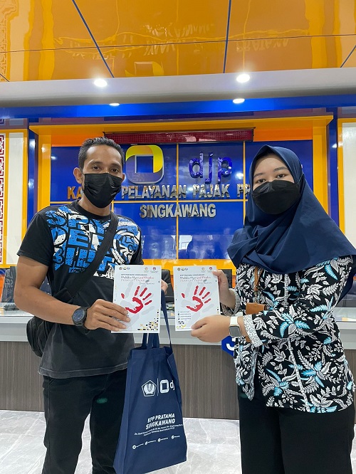 “Selain suvenir, kami juga membagikan leaflet berisi pesan antikorupsi serta daftar kontak dan sosial media KPP Pratama Singkawang. Untuk pembagian suvenir dan leaflet dilakukan oleh petugas TPT setelah wajib pajak memperoleh layanan perpajakan,” tambah Satria.