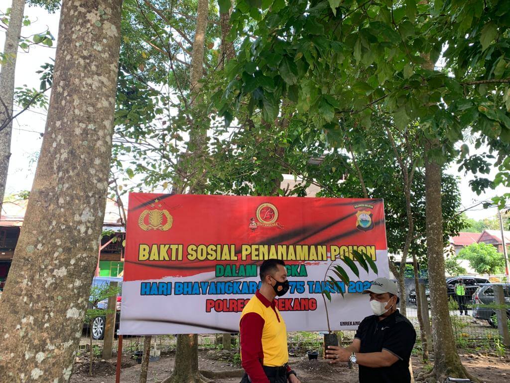 Kepala KP2KP Enrekang Ivan Putra Pancasakti menghadiri undangan Kepala Polres Enrekang untuk mengikuti acara bakti sosial penanaman pohon dalam rangka memperingati Hari Bhayangkara ke-75 (Jumat, 25/6). Pelaksanaan seremonial penanaman pohon ini dilangsungkan di area Taman Kota Enrekang, Kabupaten Enrekang.