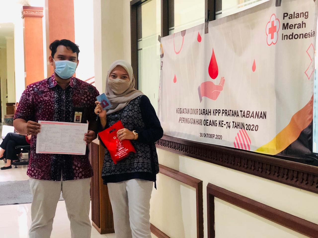 Dalam rangka memperingati Hari Oeang Republik Indonesia ke-74 Kantor Pelayanan Pajak (KPP) Pratama Tabanan mengadakan kegiatan donor darah di selasar Lantai 2 KPP Pratama Tabanan (Jumat, 20/11).