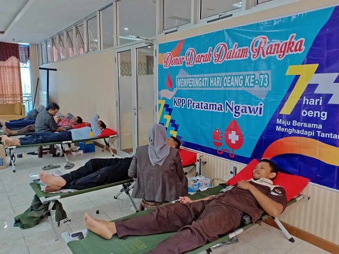Kantor Pelayanan Pajak (KPP) Pratama Ngawi melaksanakan kegiatan donor darah di Aula KPP Pratama Ngawi (Rabu, 30/10). Kegiatan donor darah ini merupakan rangkaian acara dalam rangka memperingati Hari Oeang tahun 2019. Selain itu, kegiatan tersebut bertujuan untuk meningkatkan rasa kepedulian para pegawai terhadap sesama.