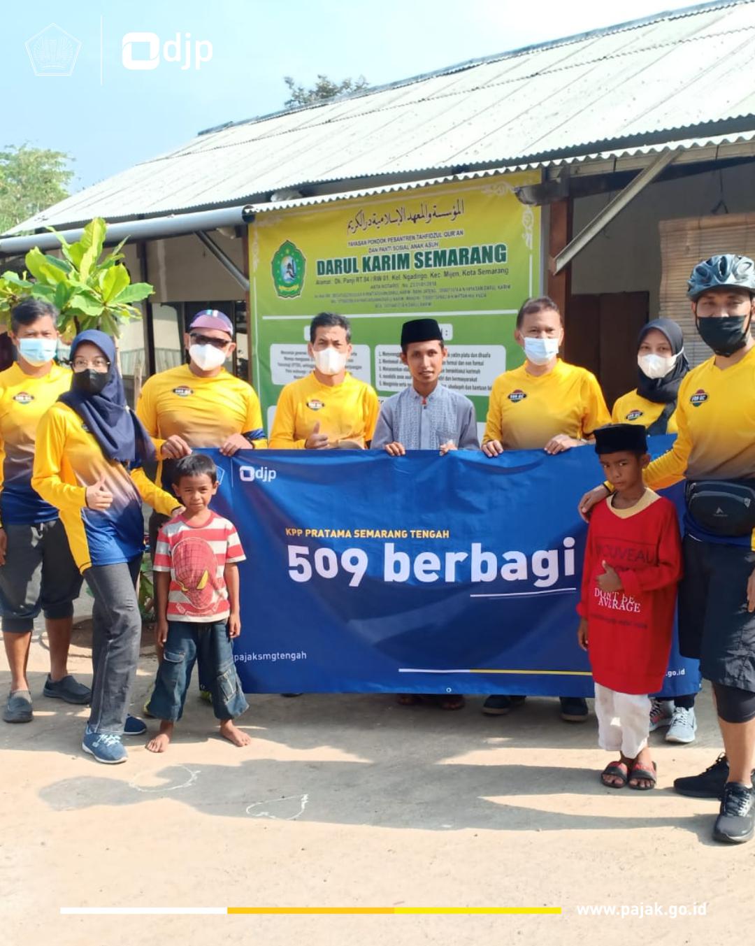Kantor Pelayanan Pajak (KPP) Pratama Semarang Tengah mengadakan kegiatan sosial dengan tajuk “509 Berbagi”di Semarang (Jumat, 22/10). Acara ini dilaksanakan oleh Tim Gowes 509 yang merupakan komunitas sepeda para pegawai KPP Pratama Semarang Tengah dalam rangka menyemarakkan Hari Oeang Republik Indonesia (HORI) ke-75 yang diperingati pada tanggal 30 Oktober 2021.