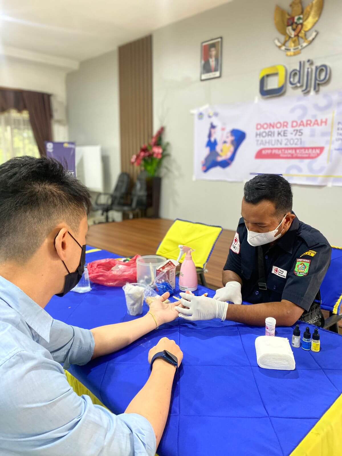Kantor Pelayanan Pajak (KPP) Pratama Kisaran bekerja sama dengan Palang Merah Indonesia (PMI) Kabupaten Asahan menyelenggarakan kegiatan donor darah di Aula Berdikari KPP Pratama Kisaran, Kabupaten Asahan, Sumatera Utara (Rabu, 27/10). Kegiatan ini diselenggarakan untuk memperingati Hari Oeang Republik Indonesia ke-75 yang jatuh pada tanggal 30 Oktober 2021.
