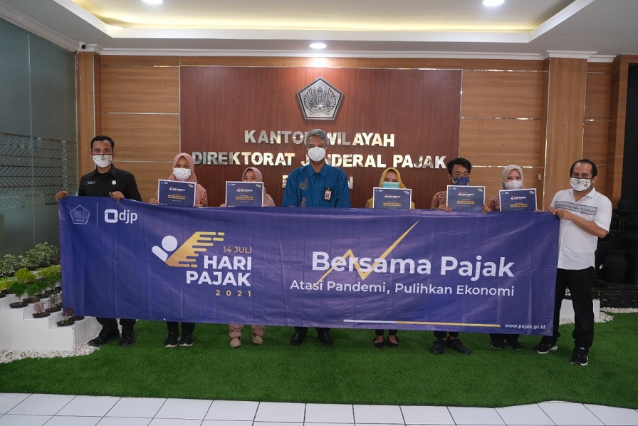 Kantor Wilayah Direktorat Jenderal Pajak (Kanwil DJP) Banten menyerahkan santunan ke panti sosial, panti asuhan, dan Pegawaian Pemerintah Non Pegawai Negeri (PPNPN) berupa uang tunai, sembako, dan bantuan pendidikan dalam bentuk penyediaan sarana jaringan internet dan fasilitas pembelajaran dalam rangkaian kegiatan DJP Peduli pada Hari Pajak tahun 2021 di Kota Serang (Jumat, 9/7).