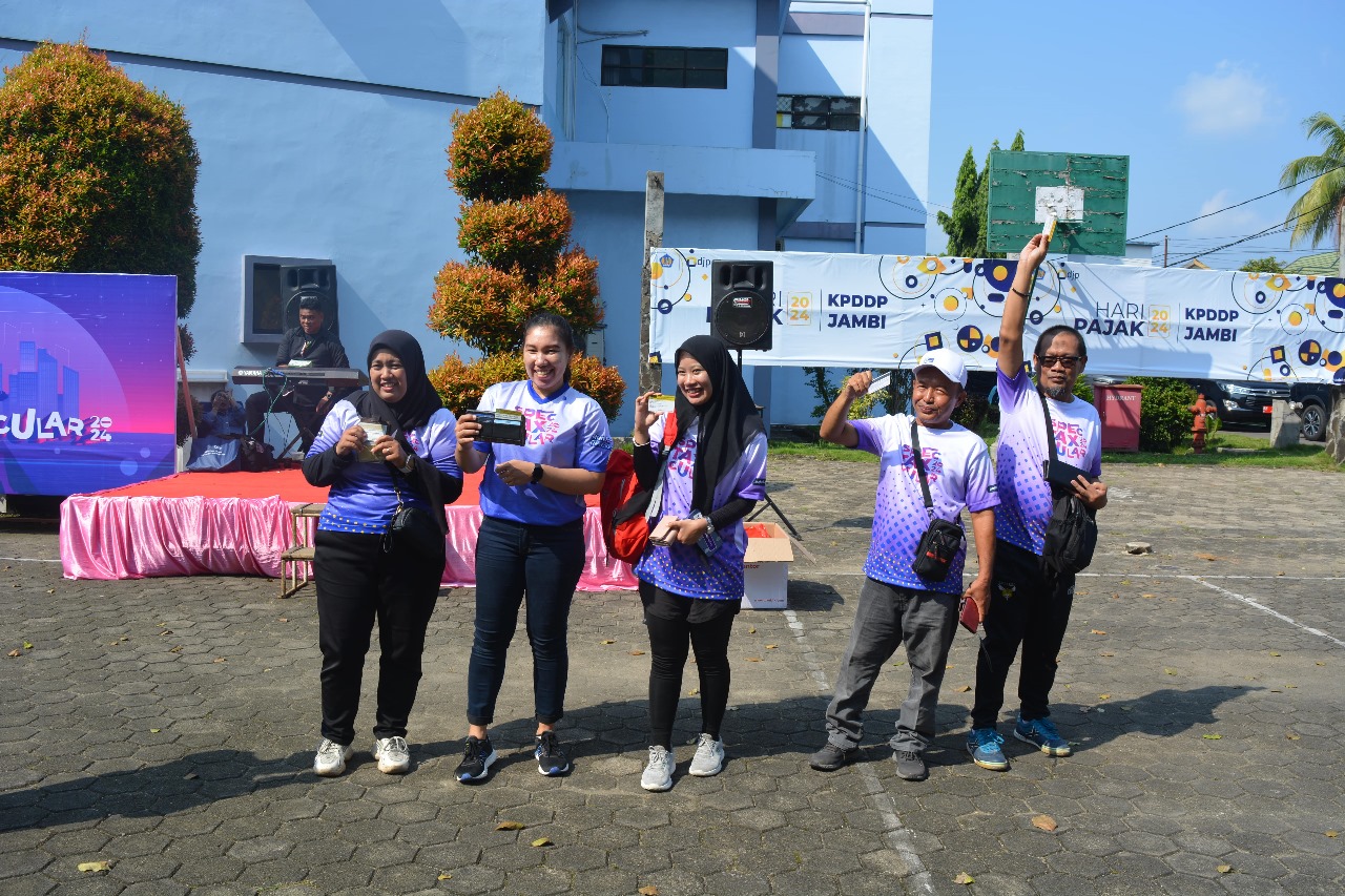 Ratusan warga Kota Jambi dengan penuh semangat mengikuti acara Spectaxcular tahun 2024 yang diselenggarakan oleh Kantor Pelayanan Pajak (KPP) Pratama Jambi Telanaipura, KPP Pratama Jambi Pelayangan, dan Kantor Pengolahan Data dan Dokumen Perpajakan (KPDDP) Jambi. Acara ini berlangsung di halaman gedung KPDDP Jambi sejak pukul 06.30 WIB (Sabtu, 14/7).
