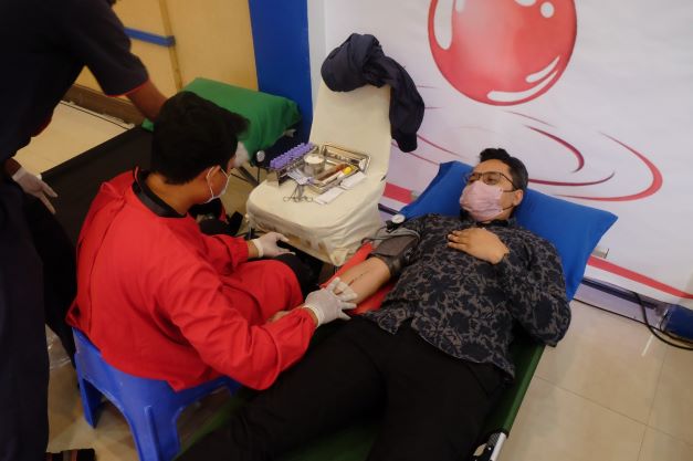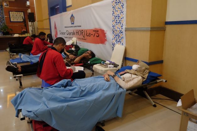 Pegawai Kantor Pelayanan Pajak (KPP) Pratama Kendari mengikuti kegiatan donor darah yang dilaksanakan untuk memperingati Hari Oeang Republik Indonesia (HORI) ke-75 (Selasa, 19/10). Kegiatan ini dilaksanakan dengan penerapan protokol kesehatan di ruang aula Kanwil Direktorat Jenderal Perbendaharaan (DJPb) Provinsi Sulawesi Tenggara, Kota Kendari.