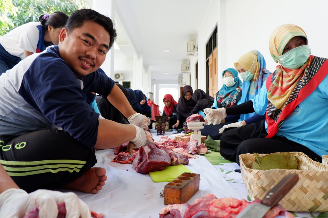 Tebar Kurban (Tabur) Idul Adha KPP Pratama Surakarta diawali dengan penyembelihan hewan kurban berupa tiga ekor sapi dan tiga ekor kambing (Senin, 12/8). Daging kurban kemudian dipotong dan dikemas dalam besek bambu.