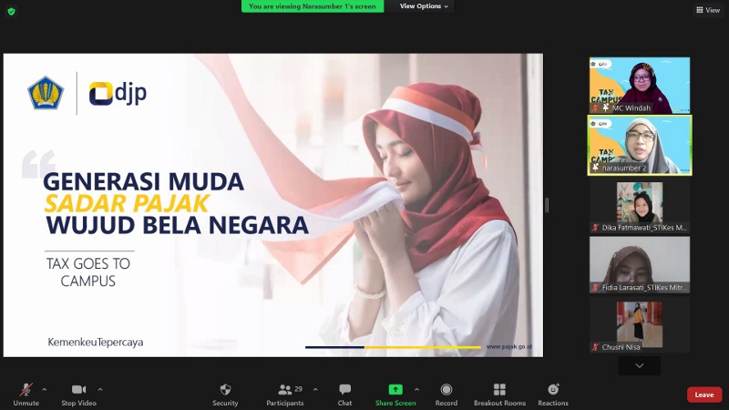 Kantor Pelayanan Pajak (KPP) Pratama Karanganyar menggelar kegiatan Tax Goes To Campus ke Akademi Peternakan Karanganyar (Rabu, 27/10) dan Sekolah Tinggi Ilmu Kesehatan Mitra Husada Karanganyar (Kamis, 28/10). Acara yang mereka gelar secara daring selama dua hari dalam rangka menyambut hari Sumpah Pemuda mengambil tema “Generasi Muda Sadar Pajak Wujud Bela Negara”. Diikuti oleh 50 peserta dari Apeka Karanganyar dan 30 peserta dari Stikes Mitra Husada Karanganyar.