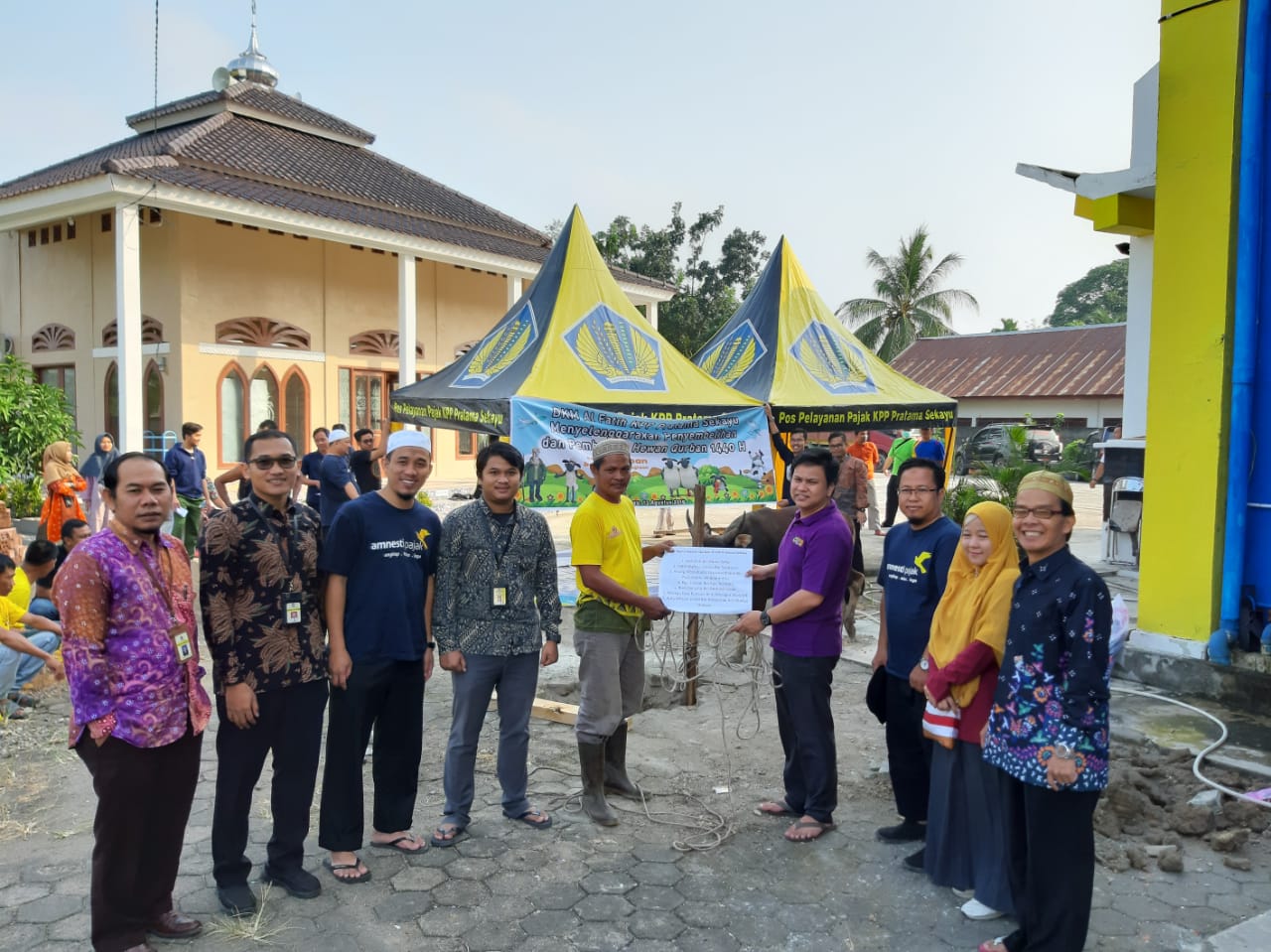 Memperingati Hari Raya Iduladha 1440 H, KPP Pratama Sekayu menyelenggarakan acara Penyembelihan dan Pembagian Hewan Kurban (Selasa, 13/8). Hewan kurban yang disembelih berasal dari beberapa pegawai KPP Pratama Sekayu. Daging kurban dibagikan kepada yayasan dan panti asuhan serta masyarakat sekitar kantor yang berhak menerimanya.