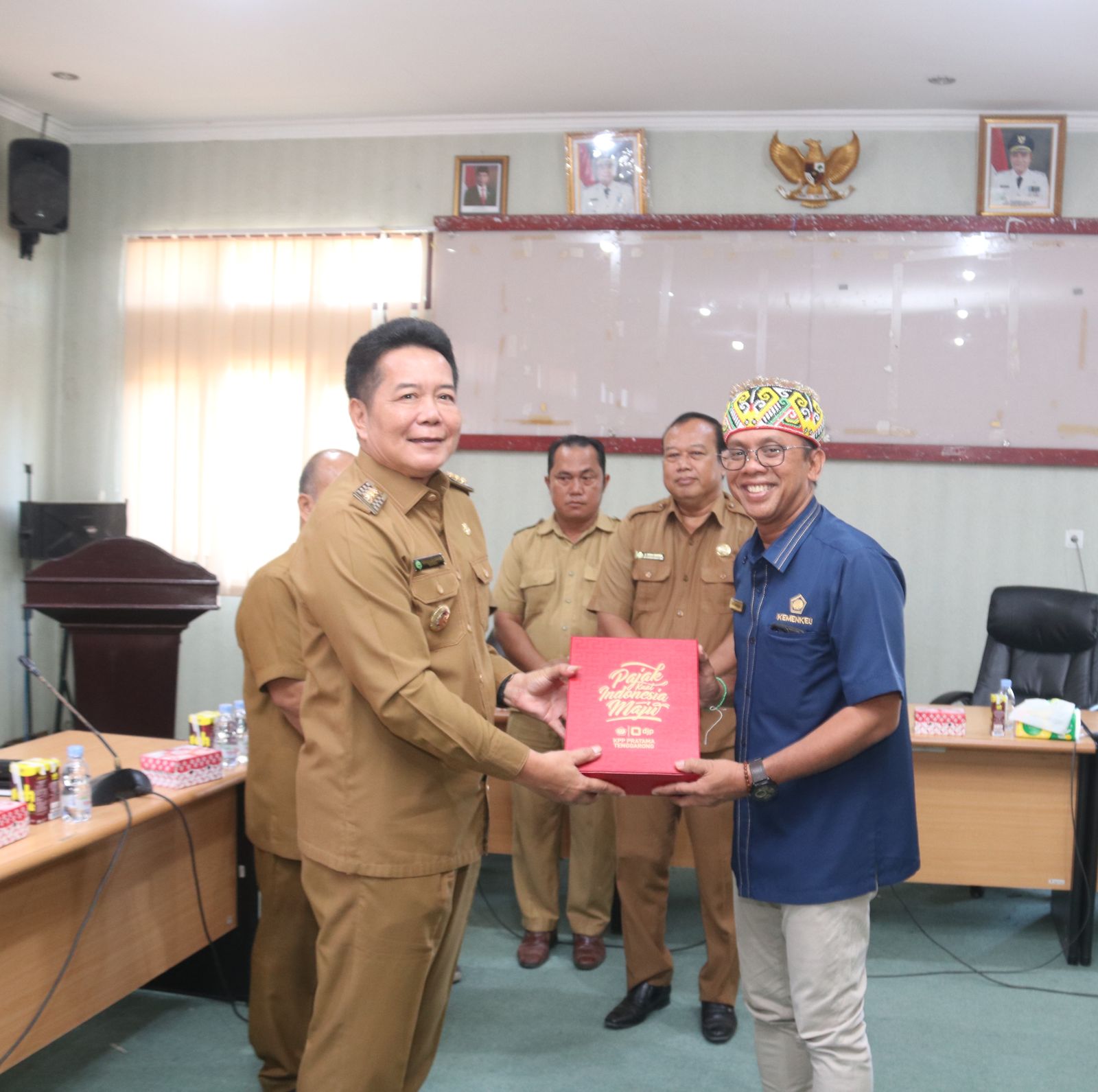 Kepala KPP Pratama Tenggarong Wahyu Kristianto bersama pegawai KP2KP Sendawar disambut baik dimulai dengan penyambutan pemakaian songkok adat oleh Bonifasius Belawah Geh,S.H., ME selaku Bupati Kabupaten Mahakam Ulu, beserta jajarannya. Wilayah Mahakam Ulu merupakan wilayah kerja terjauh yang harus ditempuh menggunakan speedboat dari KP2KP Sendawar.