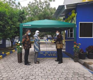Selain peresmian layanan drive thru, Edwin juga meresmikan Podcast Pajak Muntok dengan melakukan pemotongan tumpeng.