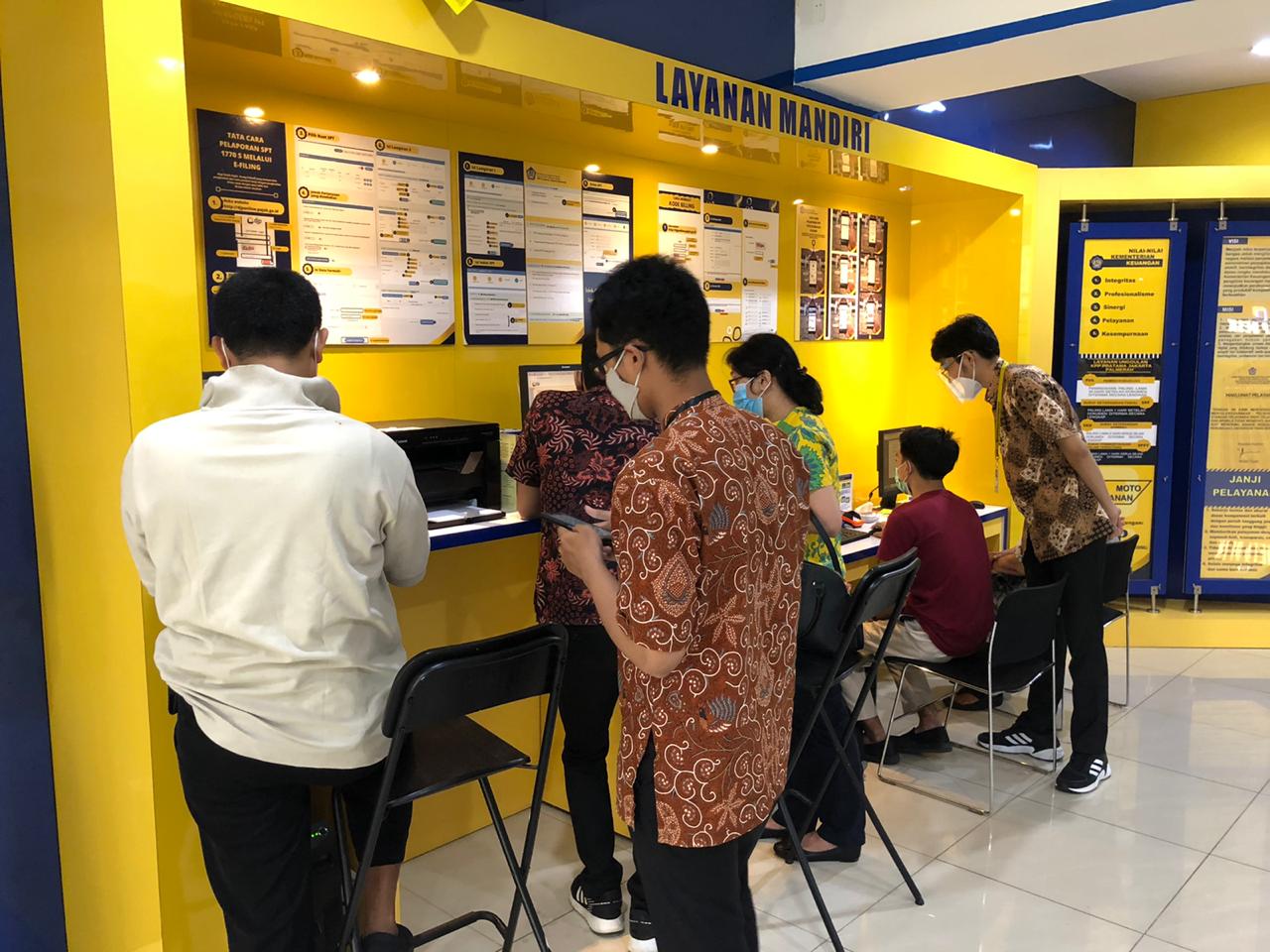 Menjelang batas akhir pelaporan SPT Tahunan 2020, Kantor Pelayanan Pajak (KPP) Pratama Jakarta Palmerah mempersiapkan tiga petugas khusus penerima asistensi e-Filing, dua petugas pengarah layanan, satu petugas EFIN, dan empat petugas konsultasi (helpdesk) di area Tempat Pelayanan Terpadu (TPT), Jakarta (Selasa, 2/3).