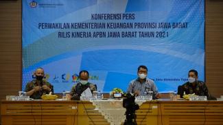 Perwakilan Kementerian Keuangan Provinsi Jawa Barat menggelar Konferensi Pers Rilis Kinerja APBN Jawa Barat Tahun 2021 di Auditorium Gedung Keuangan Negara Bandung, Jalan Asia Afrika Nomor 114 Kota Bandung (Jumat, 21/1).