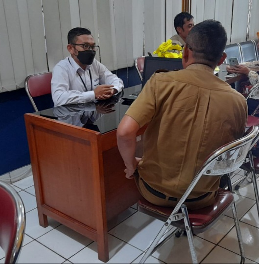 Seorang pengusaha reparasi mobil mengonsultasikan penggunaan aplikasi e-Faktur desktop di Tempat Pelayanan Terpadu (TPT) Kantor Pelayanan, Penyuluhan, dan Konsultasi Perpajakan (KP2KP) Pelabuhan Ratu Jalan Bhayangkara KM 1, Citepus, Palabuhanratu, Sukabumi (Senin, 31/7).