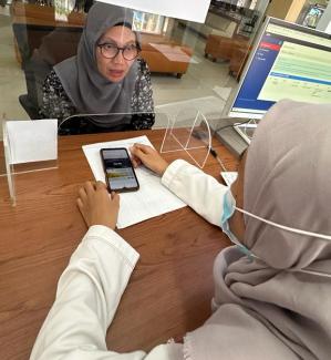 Seorang wajib pajak mendatangi loket pelayanan pajak Kantor Pelayanan Pajak (KPP) Purwakarta yang berlokasi di Mall Pelayanan Publik (MPP) Bale Madukara, Jalan Jenderal Sudirman, Kelurahan Nagri Kaler, Kecamatan Purwakarta, Kabupaten Purwakarta (Senin, 16/10). Wajib pajak tersebut berkonsultasi terkait pendaftaran NPWP istri.