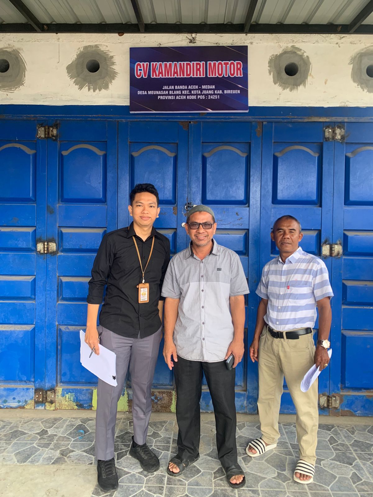 Kantor Pelayanan Pajak (KPP) Pratama Bireuen melakukan kunjungan ke pengusaha onderdil motor yang terletak di Desa Meunasah Blang, Kecamatan Kota Juang, Kabupaten Bireuen, Provinsi Aceh (Kamis, 27/7). Tim KPP Pratama Bireuen yang terdiri atas Eddy Sunarto dan T. Muhammad Fauzan Aris Munandar berkunjung dalam rangka melaksanakan verifikasi permohonan pengukuhan Pengusaha Kena Pajak (PKP) sekaligus memberikan edukasi secara langsung terkait kewajiban PKP kepada wajib pajak.
